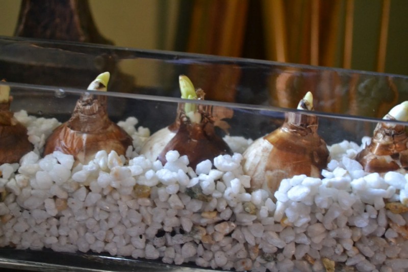 Специално за нарцисите можем да ползваме китайският метод за „садене“ в чаша с вода. На дъното на чаша се насипват ситни камъчета, налива се вода, която не трябва да ги покрива. Отгоре се поставят луковиците така, че основата им да е непосредствено над нивото на водата, без да я докосва. Съдът се покрива с тъмна материя и се оставя на хладно за около две седмици. След появата на първите кълнове, съдът се открива и се пренася в помещение, където температурата се повишава постепенно. Съвсем скоро ще можете да се радвате на слънчевите цветове на нарциса.