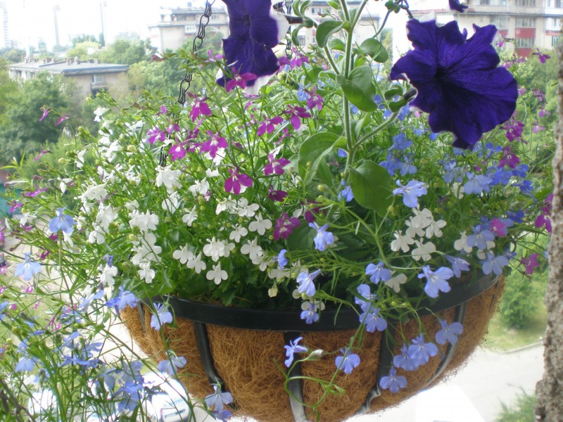 Към края на февруари или началото на март се засява и петунията. Сеенето при петунията е по същия начин като това на лобелията. При това тези две летни цветя се комбинират прекрасно в балконско сандъче или кашпа. Оптималната температура за успешното покълване на семената е около 18 – 20 градуса. Според сорта семената покълват за около 5 – 10 дни. При появата на първите истински листа младите растения се пикират в индивидуални транспортни саксии 4х4 см.