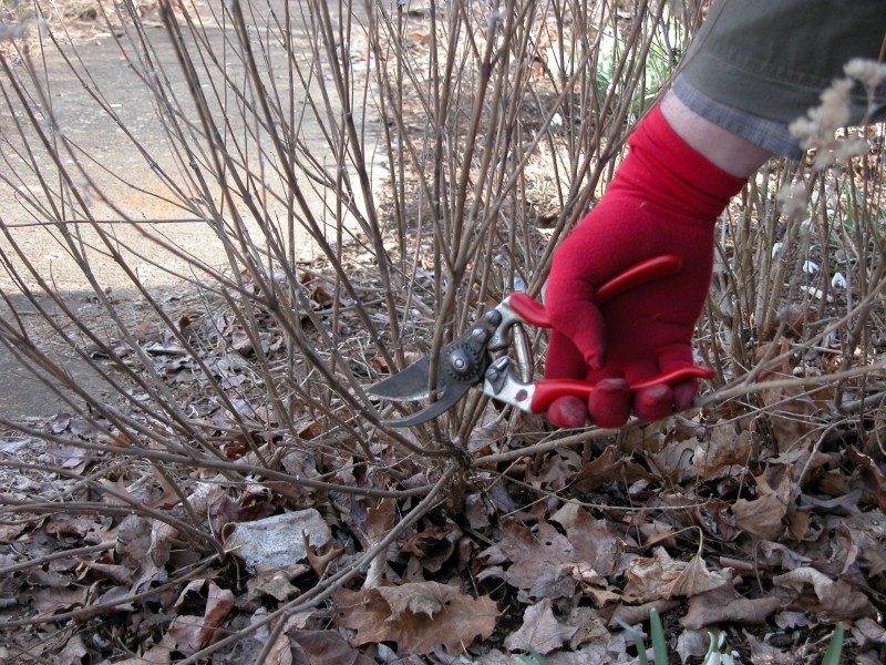 Засадените през есента без резитба храсти също трябва да бъдат подрязани през февруари. Целта е храстите да разполагат с достатъчно време за изграждане на здрав скелет от клони. Напълно се премахват слабите и болни филизи.